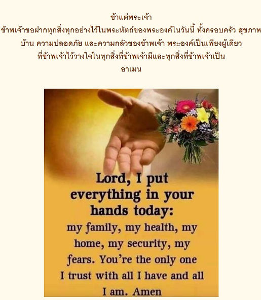 ข้าพระองค์ขอบพระคุณพระองค์สาหรับพระพรในวันนี้และสาหรับการดูแลเอา