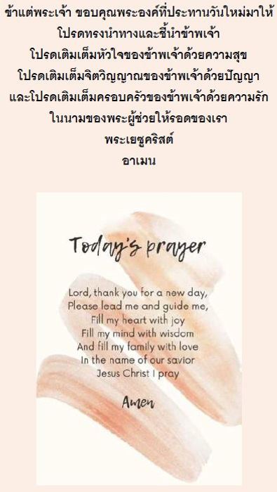 พระเจ้าที่รัก ขอบพระคุณที่ส่งพระเยซูผู้ทรงชดใช้บาปทั้งหมดของข้าพระองค์ ขอทรงหันหัวใจของข้าพระองค์มาหา